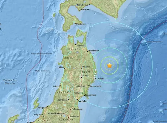 Vị trí một trận động đất ở Nhật Bản (Ảnh: USGS)