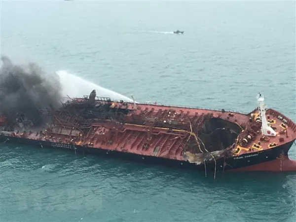 Tàu chở dầu Aulac Fortune bốc cháy ngoài khơi Hong Kong, Trung Quốc ngày 8/1/2019.