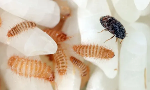 Bọ cánh cứng khapra là loại côn trùng nhỏ màu nâu dài tới 3mm ăn thức ăn dự trữ, khiến thức ăn không thể sử dụng được nữa.