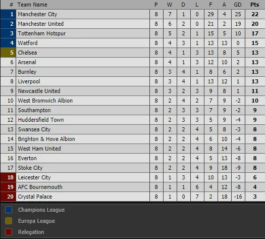 (VOH) – VOH cập nhật kết quả và bảng xếp hạng sau vòng 8 Giải ngoại hạng Anh (Premier League) 2017-2018.