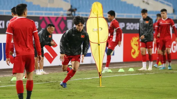 18h00 ngày 14/12, ĐT Việt Nam có buổi tập làm quen sân Mỹ Đình. Ảnh: Như Đạt.