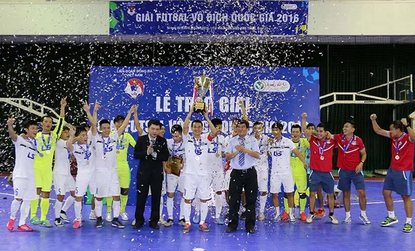 Các cầu thủ Thái Sơn Nam vui mừng nâng cúp