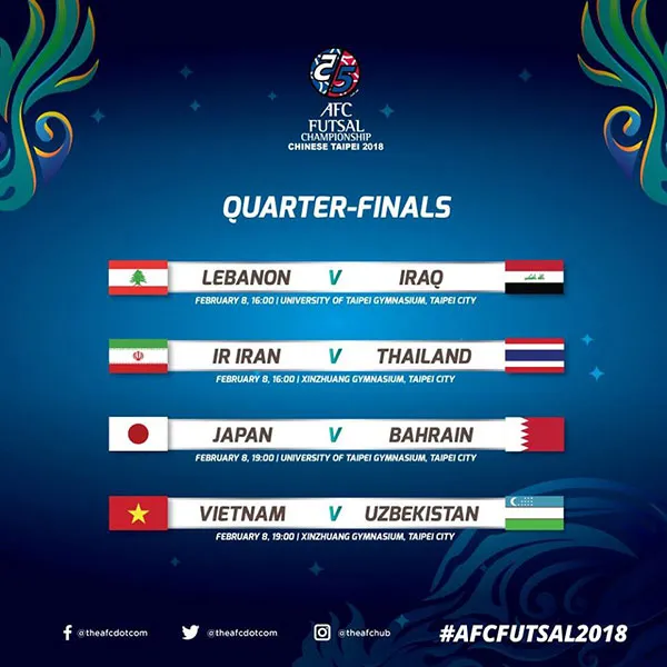 Các cặp đấu tại tứ kết Giải Futsal châu Á 2018.