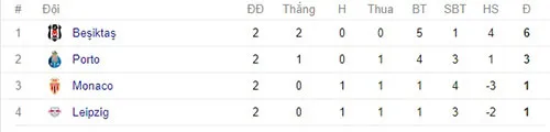 Tại bảng G, Besiktas tiếp tục xây chắc ngôi đầu bảng với 6 điểm khi đá bại RasenBallsport Leipzig 2-0 trên sân nhà.
