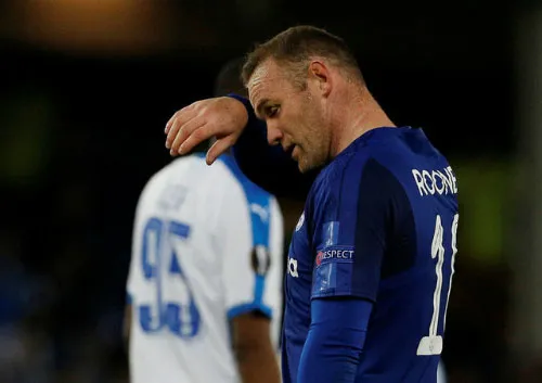 Rooney thất vọng sau khi trận đấu kết thúc dù ghi bàn đầu tiên cho Everton ở cup châu Âu.