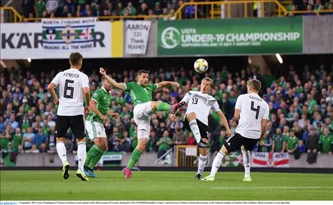 Với lợi thế sân nhà cùng phong độ đang lên, Bắc Ireland đã chơi cực kỳ hưng phấn và có những tình huống áp sát khó chịu khiến ĐT Đức của HLV Joachim Loew vất vả. Trước khi hiệp 1 khép lại, người Đức mới có tình huống dứt điểm trúng đích đầu tiên khi Kolstermann tạo cơ hội cho Timo Werner kết thúc song Peacock-Farrell - thủ môn đang khoác áo Burnley ở Premier League - đã xuất sắc cứu thua cho đội chủ nhà.