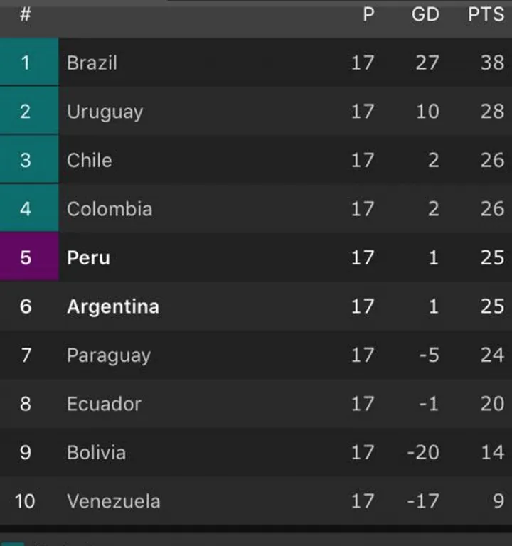 Argentina vẫn còn cơ hội dự World Cup 2018 khi chỉ cần thắng Ecuador ở lượt trận cuối. Trong khi trận đấu còn lại giữa Colombia và Peru có kết quả thắng thua.