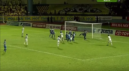 Khung thành đội Quảng Ninh đã phải rung lên trong những giây phút cuối cùng của trận đấu