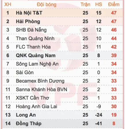Với chiến thắng này, Hà Nội T&T tiếp tục ngôi đầu bảng với 47 điểm.