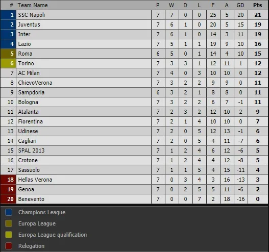 Kết quả và bảng xếp hạng sau vòng 7 Serie A
