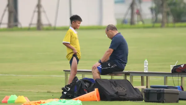Điều thú vị là khi một cậu bé vào xem các anh U22 Việt Nam tập luyện, thầy Park đã gọi lại và trò chuyện khá vui vẻ.