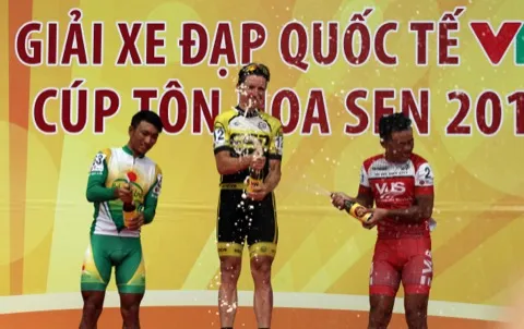 Tay đua Hà Lan Jos Koop (áo xanh) lần thứ hai liên tiếp nhất chặng