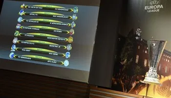 Màn hình hiển thị kết quả bốc thăm vòng 16 đội Europa League.