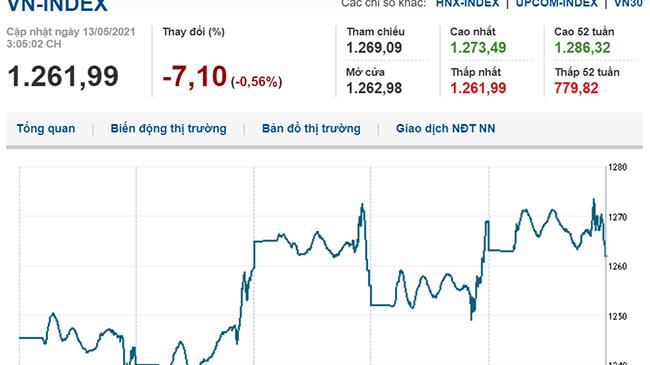 * Phiên giao dịch chiều 13/5/2021: VN-Index giảm hơn 7 điểm