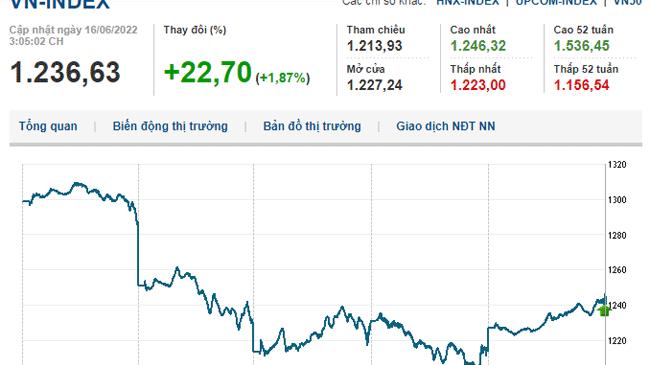 * Phiên giao dịch chiều 16/6/2022: VN-Index tăng gần 23 điểm