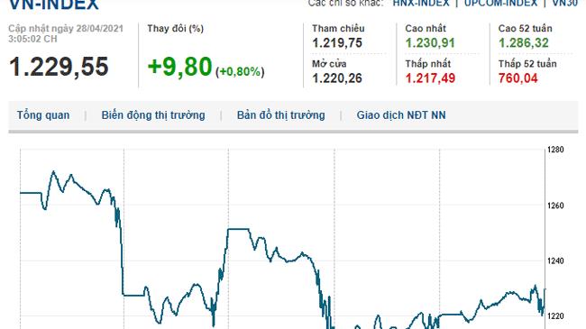 * Phiên giao dịch chiều 28/4/2021: Vn-Index chinh phục lại mốc 1.230 điểm