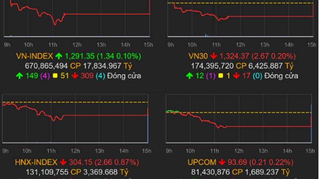 Kết phiên 7/6, VN-Index tăng 1,34 điểm (0,1%) lên 1.291,35 điểm, HNX-Index giảm 2,66 điểm (0,87%) về 304,15 điểm, UPCoM-Index giảm 0,21 điểm (0,22%) xuống 93,69 điểm.