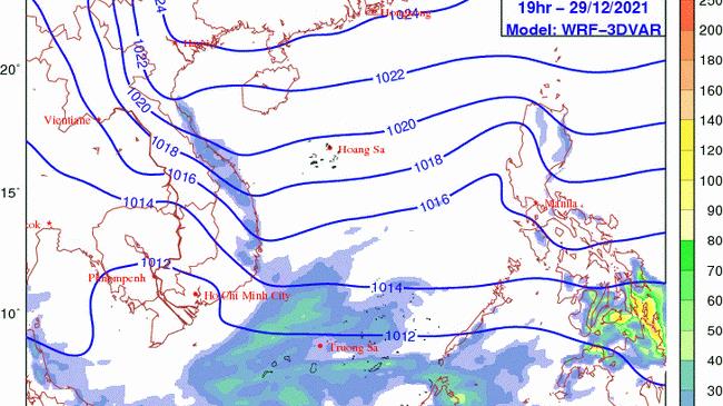 Theo Trung tâm Dự báo khí tượng thủy văn quốc gia, đêm qua và trưa nay (29/12), ở khu vực từ Quảng Bình đến Phú Yên có mưa, mưa rào, cục bộ có mưa vừa, mưa to như (lượng mưa tính từ 19h ngày 28/12 đến 13h ngày 29/12): Hải An (Quảng Trị) 45.6mm, Vĩnh Kim (Quảng Trị) 32.2mm, Khâm Đức (Quảng Nam) 30.6mm, Đức Bình Đông (Phú Yên) 53.6mm, Sông Hinh (Phú Yên) 51.8mm,….
