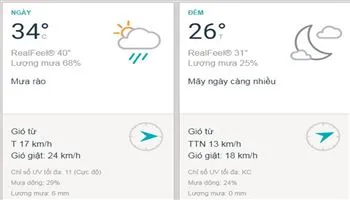 - Độ ẩm trong khoảng 65-84%. Lượng tia UV cao nhất lúc 11 giờ trưa, đạt mức 9.