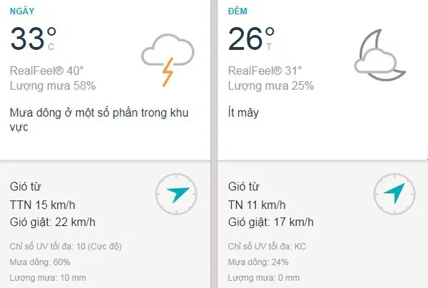 - Trời có thể có mưa dông rải rác vào thời điểm từ 15- 16 giờ. Tổng lượng mưa khoảng 10mm, thời gian mưa khoảng 2 giờ.