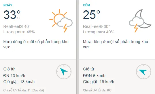 Dự báo thời tiết TPHCM ngày mai (Nguồn: Accuweather)