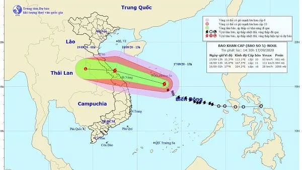 Dự báo trong 24 giờ tới, bão số 5 di chuyển theo hướng Tây Tây Bắc, mỗi giờ đi được khoảng 20km và có khả năng mạnh thêm. Đến 13 giờ ngày 18/9, vị trí tâm bão ở khoảng 16,8 độ Vĩ Bắc; 107,5 độ Kinh Đông, ngay trên bờ biển các tỉnh từ Quảng Bình đến Quảng Nam. Sức gió mạnh nhất vùng gần tâm bão mạnh cấp 10-11 (90-115km/giờ), giật cấp 13.