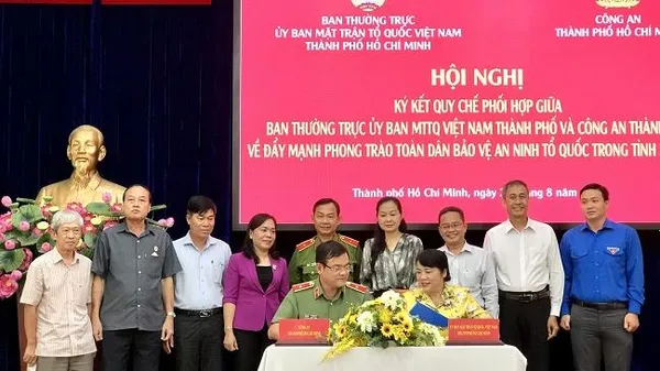 Dịp này, Ủy ban MTTQ Việt Nam TP.HCM phối hợp cùng Công an TPHCM tổ chức Hội nghị ký kết quy chế phối hợp giữa Ban thường trực Ủy ban MTTQ Việt Nam TP.HCM và Công an TP.HCM về đẩy mạnh phong trào toàn dân bảo vệ an ninh Tổ quốc trong tình hình mới. Theo quy chế, nội dung phối hợp hai bên sẽ đẩy mạnh công tác tham mưu, phối hợp triển khai thực hiện các văn bản chỉ đạo của cơ quan nhà nước về công tác đảm bảo an ninh, trật tự và xây dựng phong trào toàn dân bảo vệ an ninh Tổ quốc. Đồng thời tuyên truyền, vận động nâng cao nhận thức cho các tầng lớp nhân dân để cùng thực hiện tốt đường lối, chủ trương, chính sách của Đảng, Nhà nước; tích cực tham gia quản lý, giáo dục người thân, không vi phạm pháp luật… Phối hợp vận động toàn dân tham gia phòng, chống tội phạm và vi phạm pháp luật cho cán bộ cấp huyện, xã, khu dân cư.