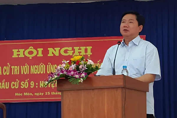 Bí thư Thành ủy TPHCM Đinh La Thăng trò chuyện với cử tri huyện Hóc Môn.
