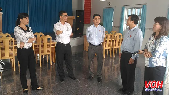 Ông Nguyễn Văn Dũng - trưởng ban kinh tế ngân sách tham quan nhà văn hóa của xã Long Hòa