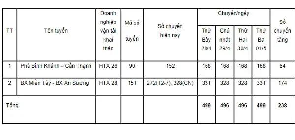 Một số tuyến xe buýt tăng chuyến trong 2 ngày 30/4 và 1/5