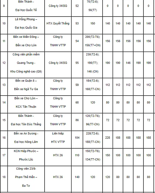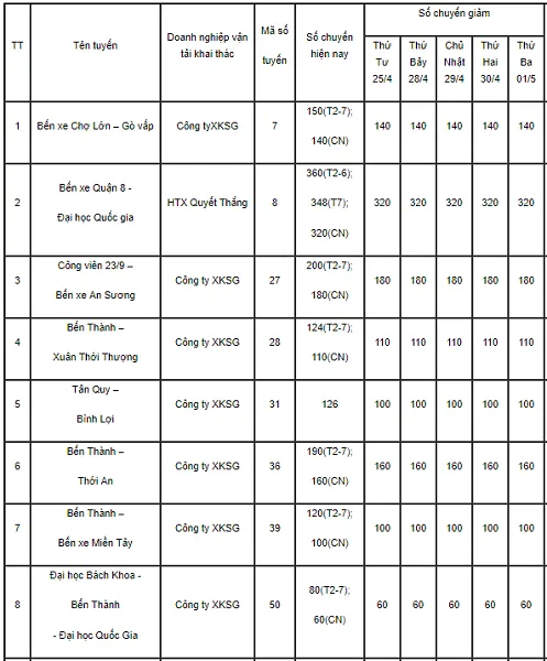 Ngoài ra, 18 tuyến xe buýt khác giảm chuyến.