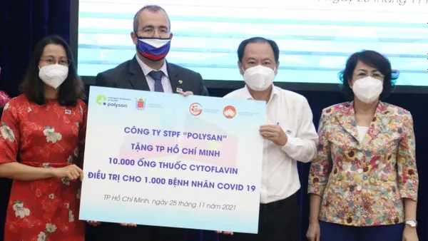 Tại lễ tiếp nhận, bà Tô Thị Bích Châu Chủ tịch Ủy ban Mặt trận Tổ quốc Việt Nam TPHCM bày tỏ sự vui mừng và cảm kích trước tấm lòng và tình cảm của chính quyền Thành phố Saint Petersburg đã làm cầu nối để Công ty Polysan tài trợ thuốc điều trị Covid -19, góp phần hỗ trợ cho công tác phòng chống dịch tại TPHCM. Đây là một biểu hiện cho tình đoàn kết và mối quan hệ hữu nghị tốt đẹp giữa Thành phố Hồ Chí Minh và Saint Petersburg.