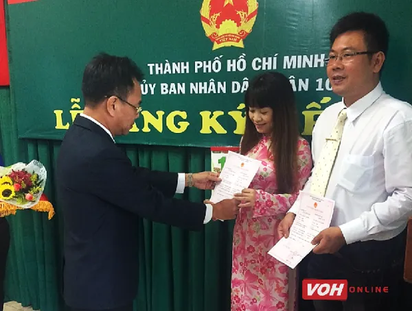 Cũng trong chiều cùng ngày, UBND quận 10 tổ chức Lễ đăng ký kết hôn cho anh Dao Duy Quang (công dân Việt Nam định cư ở Hoa Kỳ) - chị Lê Thị Thùy Trang (quốc tịch Việt Nam), anh Tan Kok Kheng (quốc tịch Singapore) - chị Lê Thị Tuyết Vân (quốc tịch Việt Nam).
