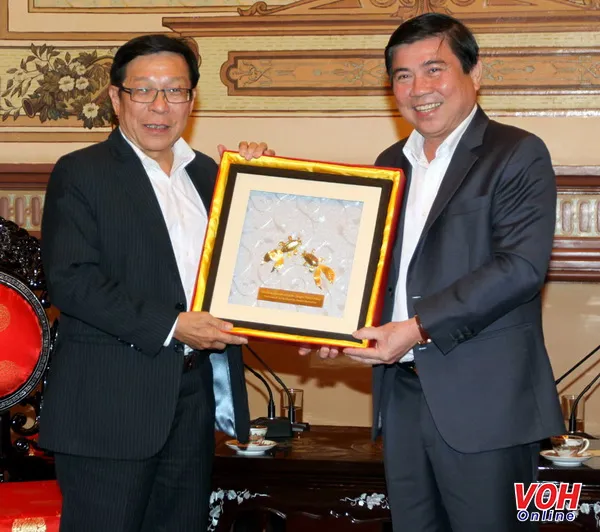 Chủ tịch UBNDTP Nguyễn Thành Phong tiếp nguyên Bộ trưởng Bộ Phát triển Quốc gia Singapore Mah Bow Tan.