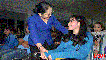 Đến tiễn công nhân có đồng chí Võ Thị Dung, Phó Bí thư Thành ủy TPHCM.