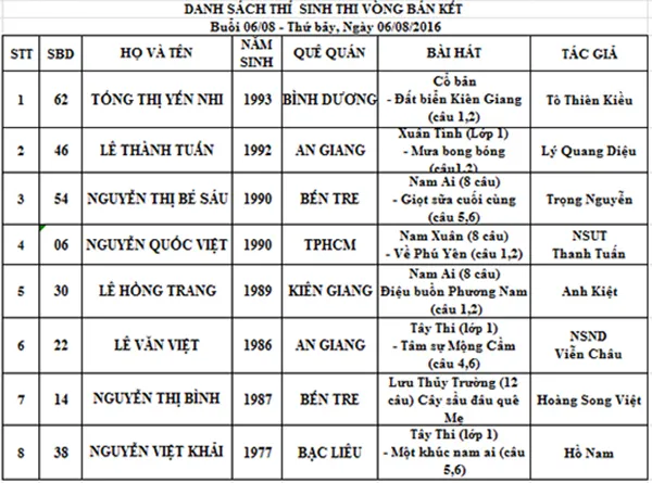 Ban khảo buổi thi hôm nay, gồm có: Thạc sĩ Huỳnh Khải, Soạn giả Đăng Minh, NSƯT Đào Vũ Thanh và Nhạc sĩ Văn Ngọc, MC: Hữu Huân.