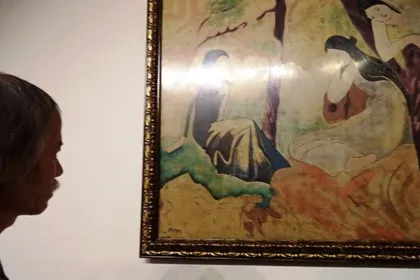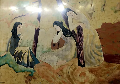 Bức sơn mài "Ba cô gái" được trưng bày tại triển lãm "Những bức tranh từ châu Âu trở về" đã được giới chuyên môn kết luận không phải tranh của danh họa Dương Bích Liên. Ảnh: VNE