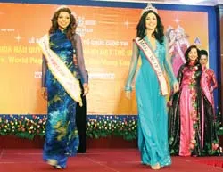 Hoa hậu các nước biểu diễn trong lễ khai mạc họp báo tổ chức cuộc thi Hoa hậu Quý bà đẹp và thành đạt Việt Nam năm 2009. Ảnh: SGGP