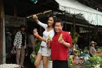 | Đi chợ chọn mua nguyên liệu cho các món ăn mà Yan Can Cook và Hoàng My sắp nấu. |