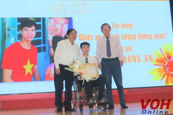 Bài viết đoạt giải nhất "Chiếc xe lăn nối chặng đường xuân", tác giả Đặng Hoàng An kể về chính cuộc đời mình với hồi ức đau buồn và sự nỗ lực chuyển hóa nỗi đau thành động lực để vươn lên, làm được những điều không phải người bình thường nào cũng có thể làm.