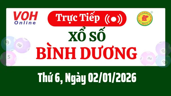 Xổ số Bình Dương hôm nay 2/1/2026 được cập nhật trực tiếp lúc 16h10 từ trường quay.