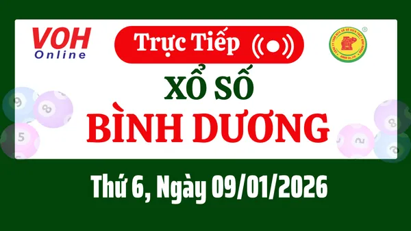 Xổ số Bình Dương hôm nay 9/1/2026 được cập nhật trực tiếp lúc 16h10 từ trường quay.