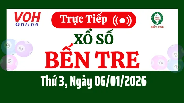 Xổ số Bến Tre hôm nay 6/1/2026 được cập nhật trực tiếp lúc 16h10 từ trường quay.