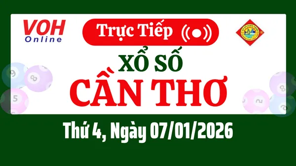 Xổ số Cần Thơ hôm nay 7/1/2026 được cập nhật trực tiếp lúc 16h10 từ trường quay.