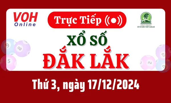 Xem ngay buổi tường thuật trực tiếp kết quả xổ số Đắk Lắk hôm nay thứ 3 17/12/2024 ngay sau đây.