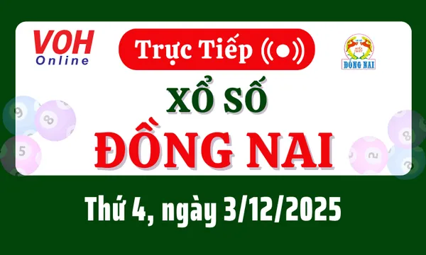 Xổ số Đồng Nai hôm nay 3/12/2025 được cập nhật trực tiếp lúc 16h10 từ trường quay.