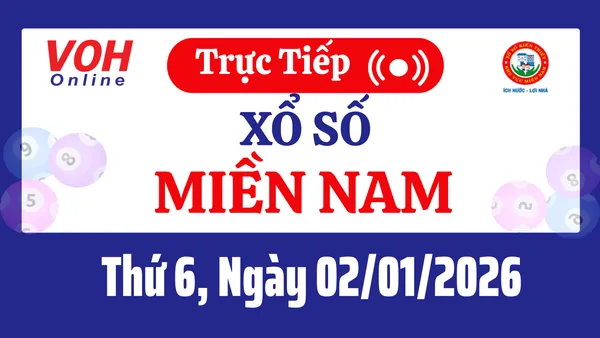 Xổ số miền Nam hôm nay 2/1/2026 được cập nhật trực tiếp lúc 16h10 từ trường quay. Các đài quay thưởng XSMN hôm nay thứ 6 gồm có: Bình Dương, Trà Vinh, Vĩnh Long.