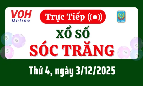 Xổ số Sóc Trăng hôm nay 3/12/2025 được cập nhật trực tiếp lúc 16h10 từ trường quay.