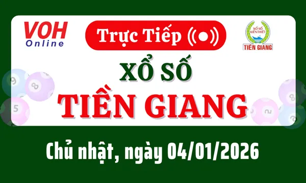 Xổ số Tiền Giang hôm nay 4/1/2026 được cập nhật trực tiếp lúc 16h10 từ trường quay.
