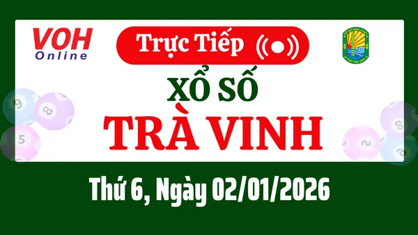 Xổ số Trà Vinh hôm nay 2/1/2026 được cập nhật trực tiếp lúc 16h10 từ trường quay.